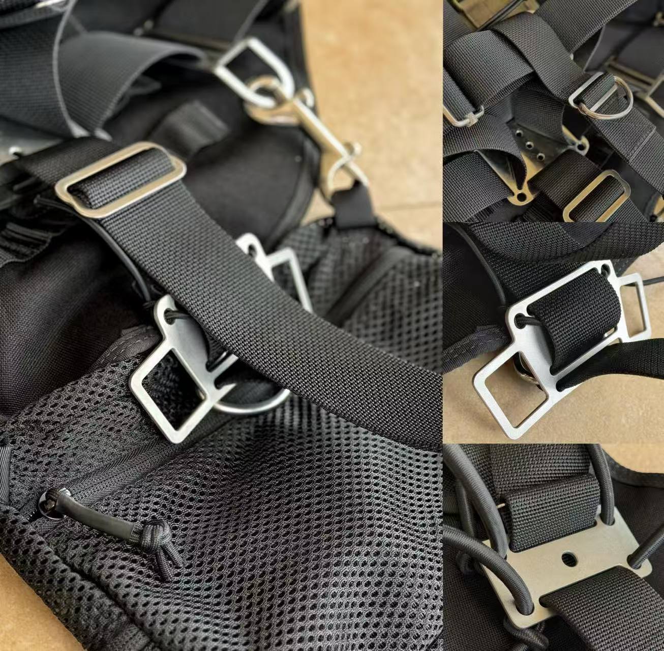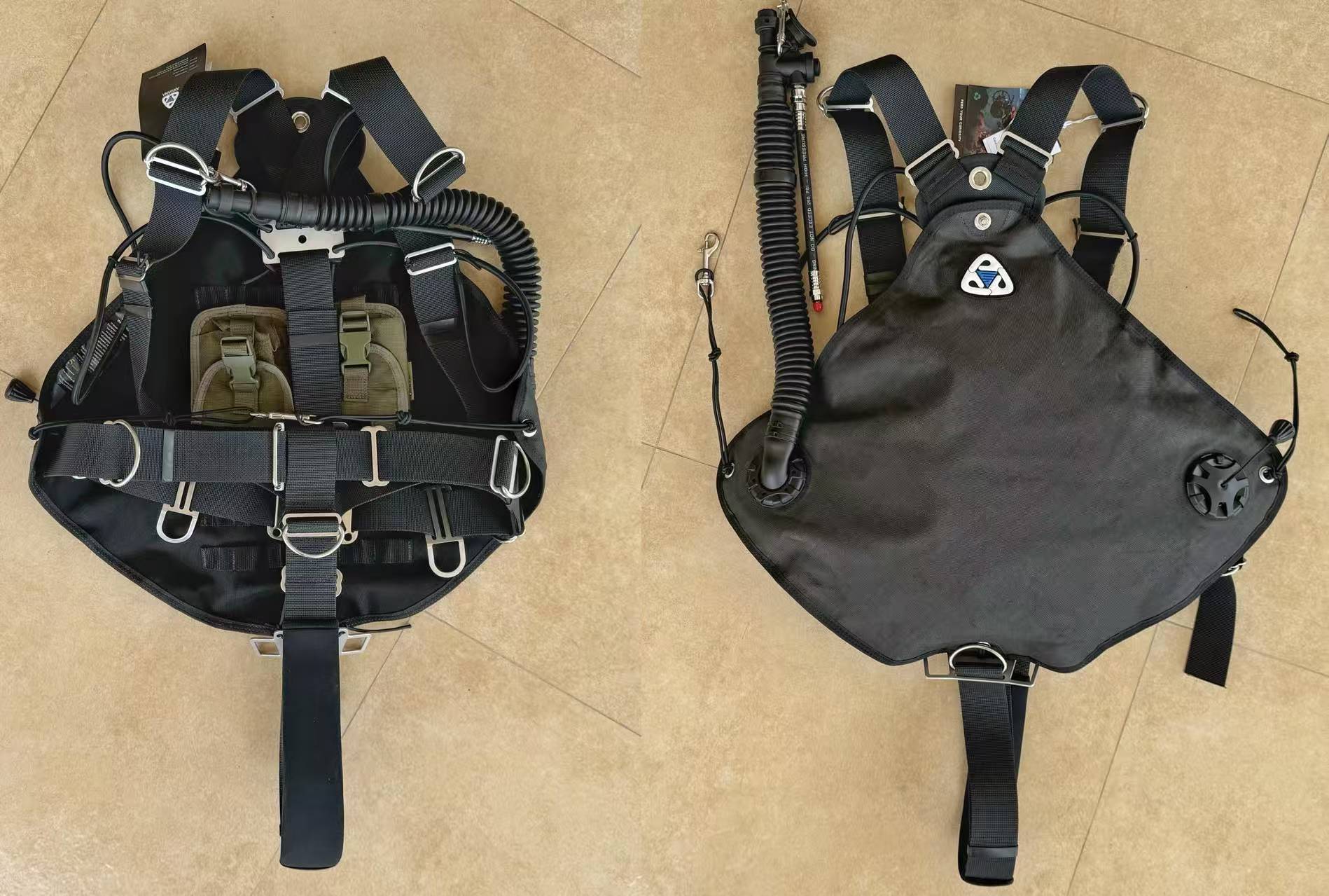 - Dual loop bungee system to hold the tanks close to body. Fit also for single bungee system